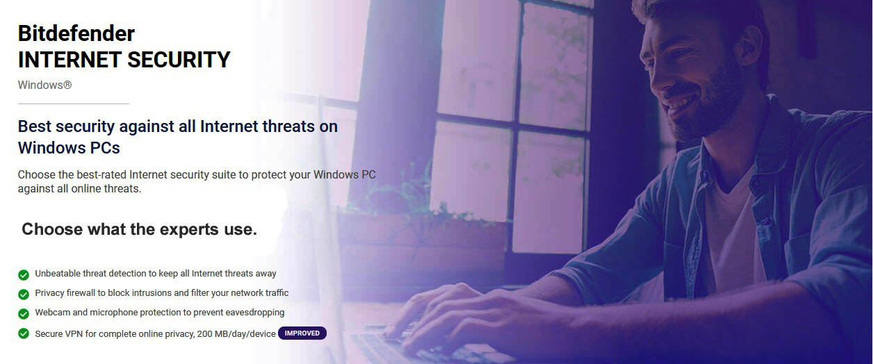 Bitdefender Internet Security 2025 gives you the best protection against Internet threats on Windows, with no drag on your system's resources. You get the most innovative technologies that predict, prevent, detect and remediate even the latest cyber-threats. In addition, the new Internet security version keeps you safe from all types of virus infections, trojans, malware, spyware, and ransomware.